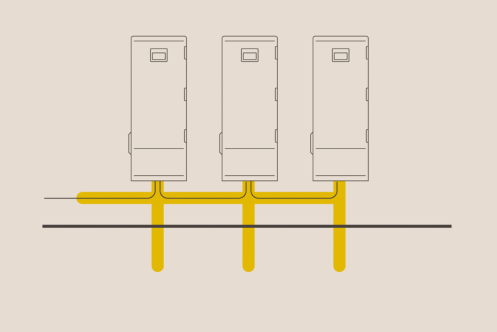 Bisher musste man für jede Ladestation eine eigene Leitung einsetzen. Mit der Power Rail Technologie von Compleo können bis zu 30 Ladepunkte intelligent in Reihe geschaltet werden.